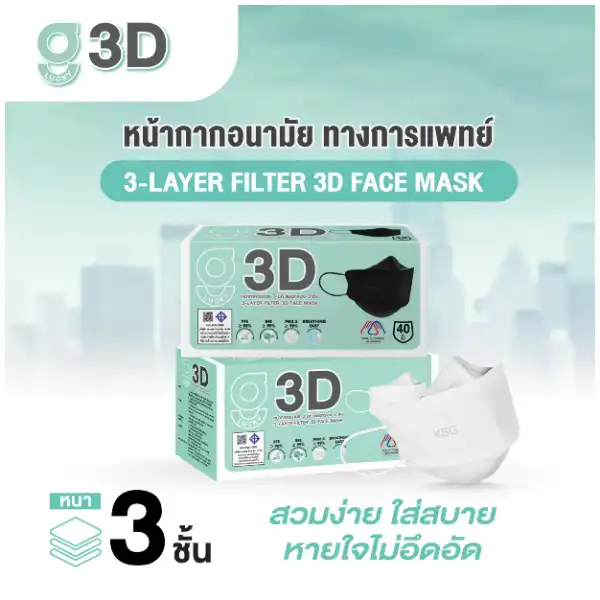 G Lucky หน้ากากอนามัย 3D สีขาว บรรจุ 40 ชิ้น (แพ็กคู่)