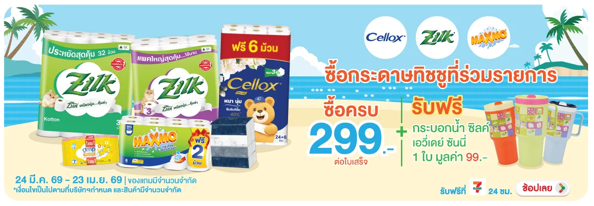 ครบ 299 บาท รับฟรี! กระบอกน้ำ ซิลค์ เอวี่เดย์ซันนี่ (คละสี,คละลาย)