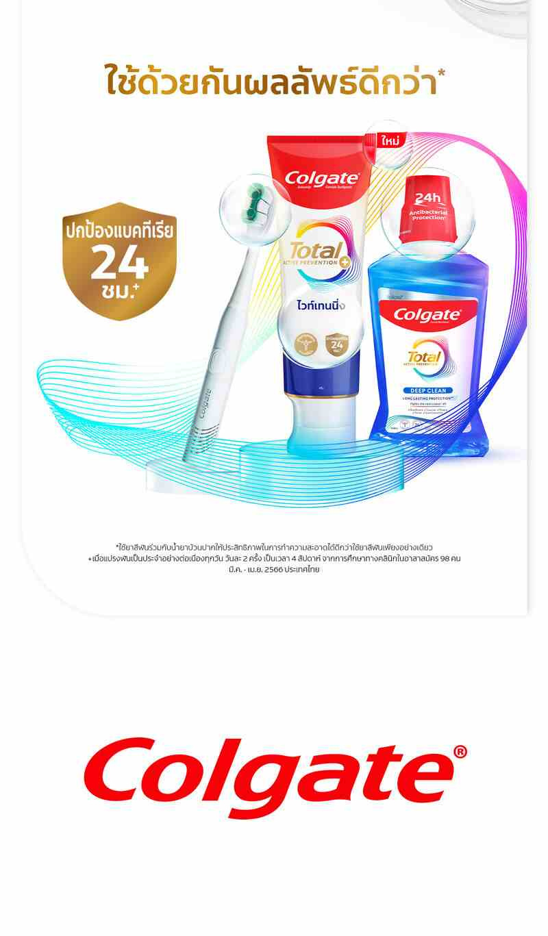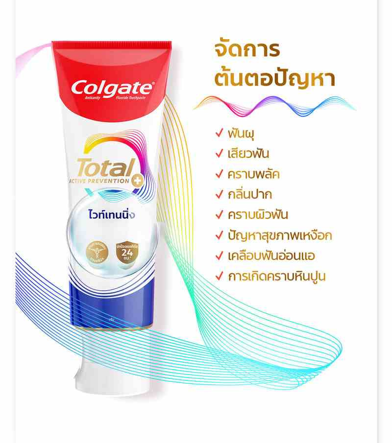 - ยาสีฟันคอลเกตโททอลโปรเฟสชั่นแนลไวท์เทนนิ่ง เพื่อการดูแลสุขภาพในช่องปากที่ดีขึ้น