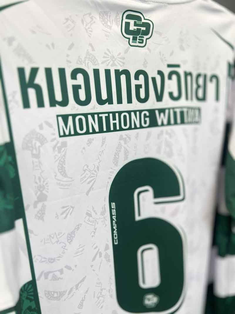 เสื้อฟุตบอลหมอนทองวิทยา สีเขียว-ขาว เบอร์ 6