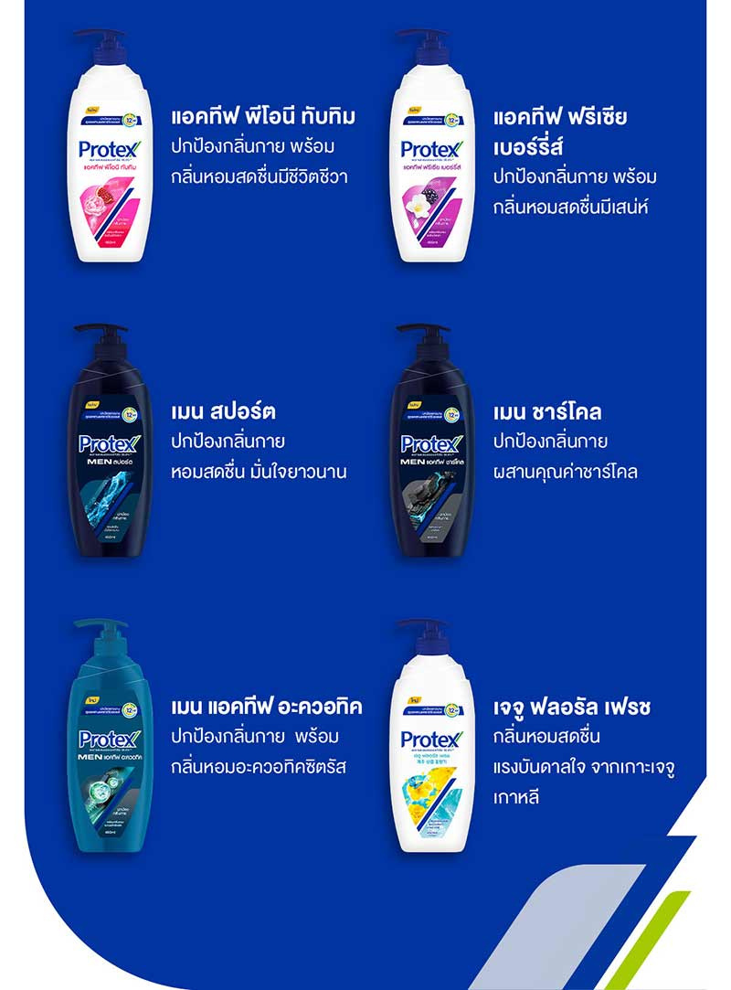 ครีมอาบน้ำสุขภาพผิว โพรเทคส์ เมน สปอร์ต ที่ให้ความรู้สึกสะอาดสดชื่นมั่นใจยาวนาน พร้อมสำหรับทุกกิจกรรมและความท้าทาย ช่วยลดการสะสมของแบคทีเรียได้ 10 เท่า ปกป้องกลิ่นกายอย่างมีประสิทธิภาพ พร้อมผ่านการทดสอบทางการแพทย์ผิวหนังสหรัฐอเมริกา