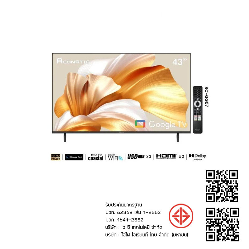 Aconatic LED Google TV รุ่น 43HS1000AN สมาร์ททีวี 43 นิ้ว จำนวน 1 ชิ้น