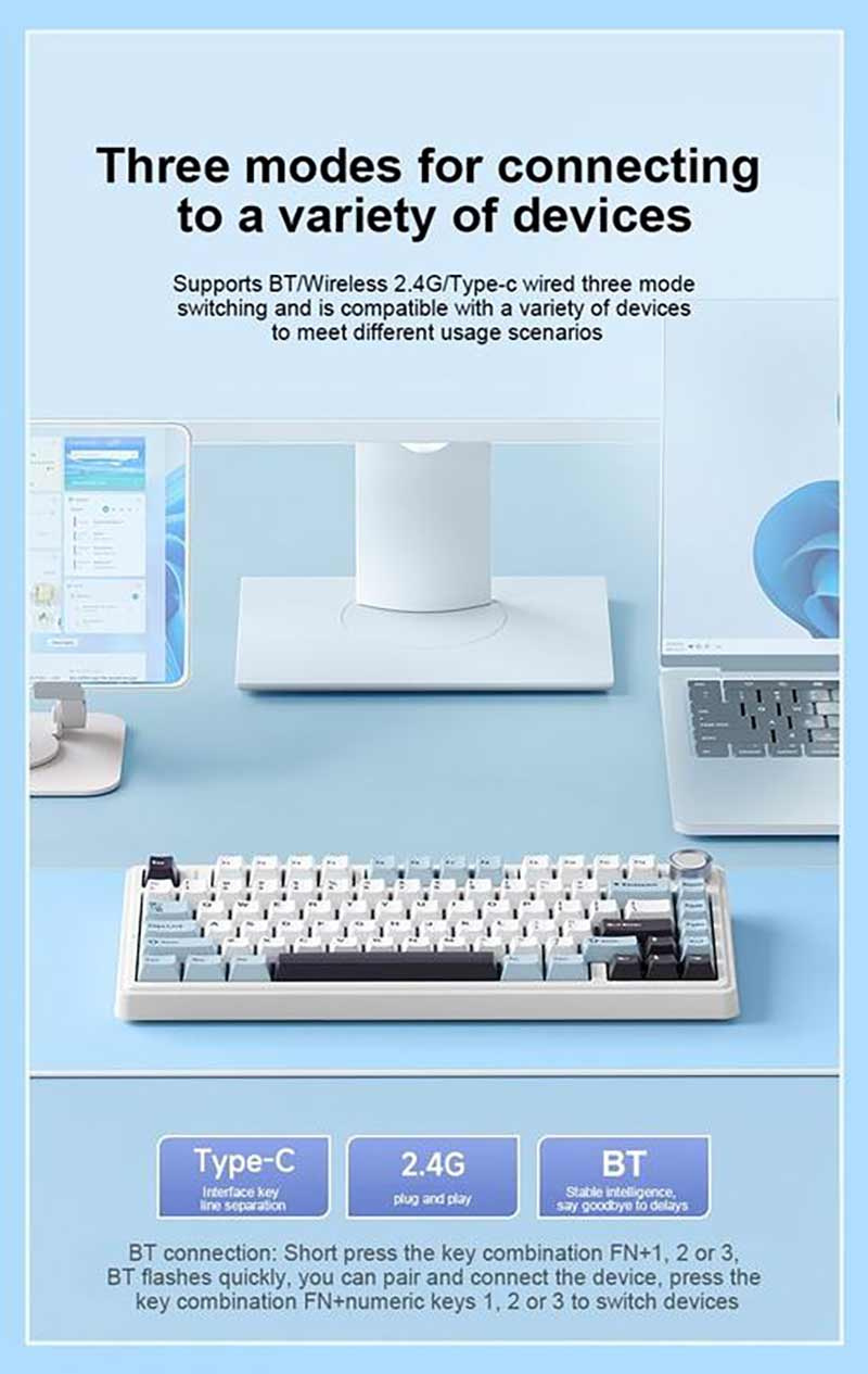 Wireless Tri Mode Machanical Gaming Keyboard GASKET RGB