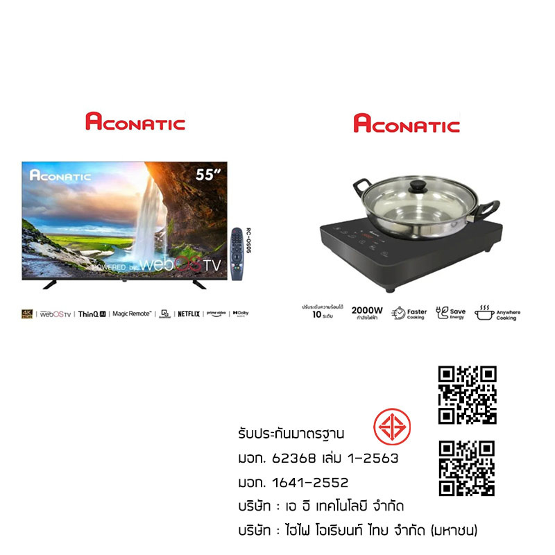 ฟรี Aconatic เตาแม่เหล็กไฟฟ้า รุ่น AN-IDC2052 จำนวน 1 ชิ้น มูลค่า 1,790 บาท