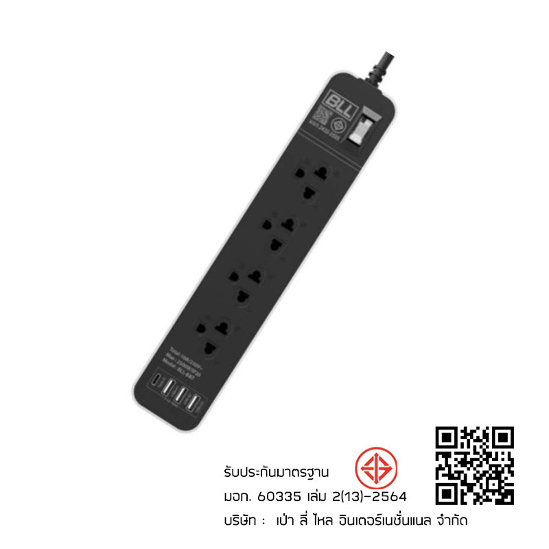พ่วงต่ออุปกรณ์ไฟฟ้า ให้คุณใช้งานได้อย่างสะดวกสบาย ด้วยรางปลั๊กไฟ BLL ผลิตด้วยวัสดุคุณภาพไม่ลามไฟ เสริมความปลอดภัยด้วยม่านนิรภัยที่ช่วยป้องกันอันตรายจากไฟดูด พร้อมเบรกเกอร์นิรภัยสามารถตัดไฟทันทีเมื่อกรณีใช้ไฟเกิน นอกจากนี้ยังสามารถควบคุมการเปิด-ปิด กระแสไฟได้สะดวกผ่านสวิตช์ไฟ สายไฟคุณภาพ เหมาะสำหรับเครื่องใช้ไฟฟ้าภายในบ้าน และสำนักงาน รวมถึงอุปกรณ์อิเล็กทรอนิกส์ต่าง ๆ ตอบโจทย์การใช้งานอย่างมีประสิทธิภาพ
