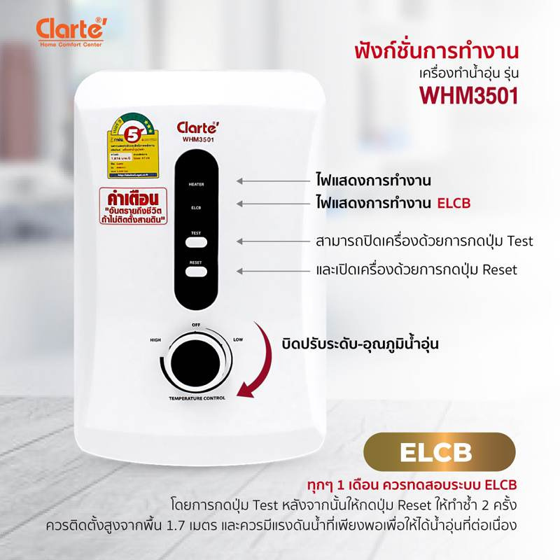- ปรับอุณหภูมิความร้อนของน้ำได้สูงสุดถึง 45 องศาเซลเซียสโดยมีระบบเซ็นเซอร์ตรวจจับเพื่อความปลอดภัย
