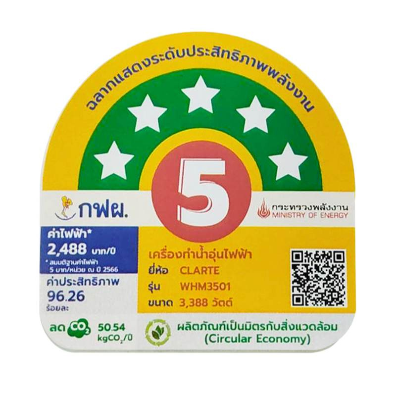 - ได้รับการทดสอผ่านมาตรฐานประหยัดไฟฟ้าเบอร์ 5