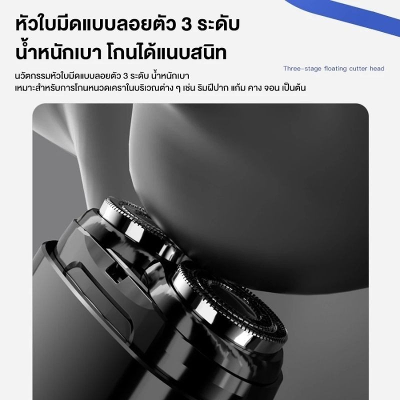 หัวตัดลอยน้ำสามขั้นตอนที่เป็นนวัตกรรมใหม่น้ำหนักเบาและเหมาะสำหรับโกนหนวดเครารอบริมฝีปากแก้มคางจอนและส่วนอื่น ๆ