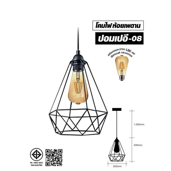 - มาพร้อมหลอด LED เรทโทรอีโค่ ST64 E27 4W กระจกทอง