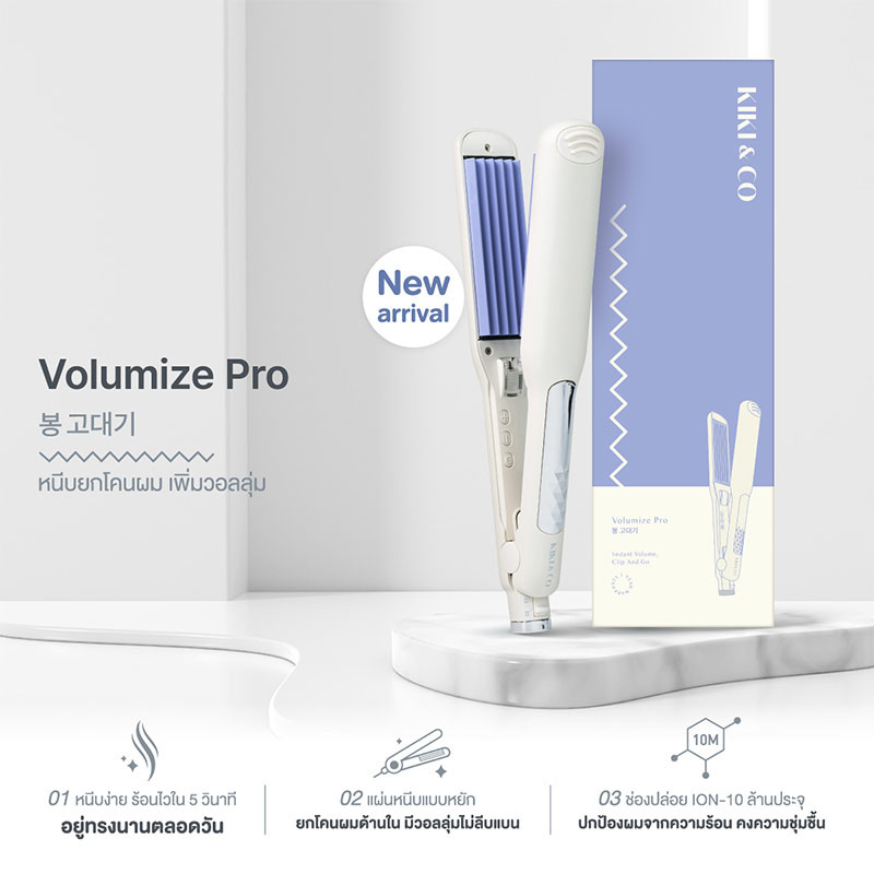เครื่องหนีบผมวอลลุ่ม หนีบยกโคน ช่วยแก้ปัญหาผมบางผมลีบแบน แบบสาวเกาหลี ดีไซน์แผ่นหนีบแบบหยักคล้ายฟันปลา หนีบยกโคนจากชั้นผมด้านใน เหมาะสำหรับสาวผมบาง ยกโคนผมให้หัวดูทุย ช่วยให้ผมดูหนาขึ้น ดูสวยพองโดยไม่ต้องยีผม ไม่ทำให้ผมเสีย หรือพันกัน หนีบข้างนอกก็จะได้ลอนเล็ก ดูสวยเก๋ สไตล์ฮิปปี้ไม่ซ้ำใคร อยู่ทรงยาวนานกว่า 72ชม. มาพร้อมช่องปล่อยไอออนลบ 10ล้านตัว ช่วยถนอมเส้นผมมากกว่าเครื่องหนีบผมทั่วไปถึง 7 เท่า ช่วยปิดเกล็ดผม กักเก็บน้ำหรือความชื้นของเส้นผมขณะใช้งาน จึงลดการชี้ฟู ให้ผมดูเงางามขึ้นหลังหนีบ เหมาะสำหรับผู้ที่หนีบผมเป็นประจำทุกวันโดยไม่ต้องการให้ผมแห้งเสีย