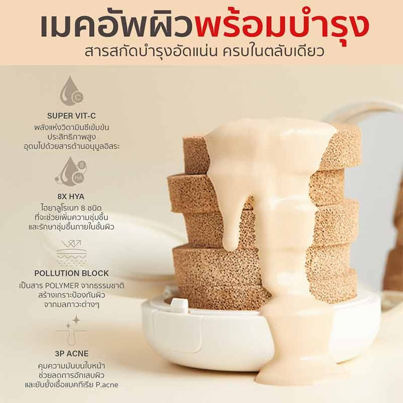เนื้อสัมผัสบางเบา ให้ผิวสวยฉ่ำแบบสุขภาพดี เผยผิวให้ดูใสขึ้นโดยไม่หนักหน้า