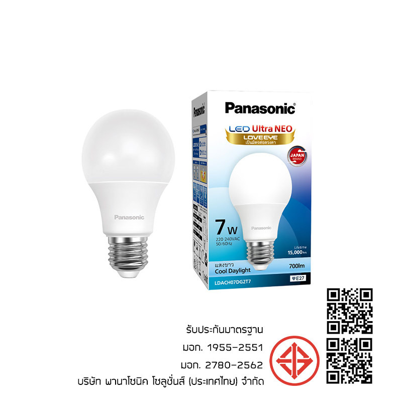 หลอดไฟพานาโซนิคแอลอีดี อัลตร้า นีโอ 7 วัตต์ แสงขาว ขั้ว E27