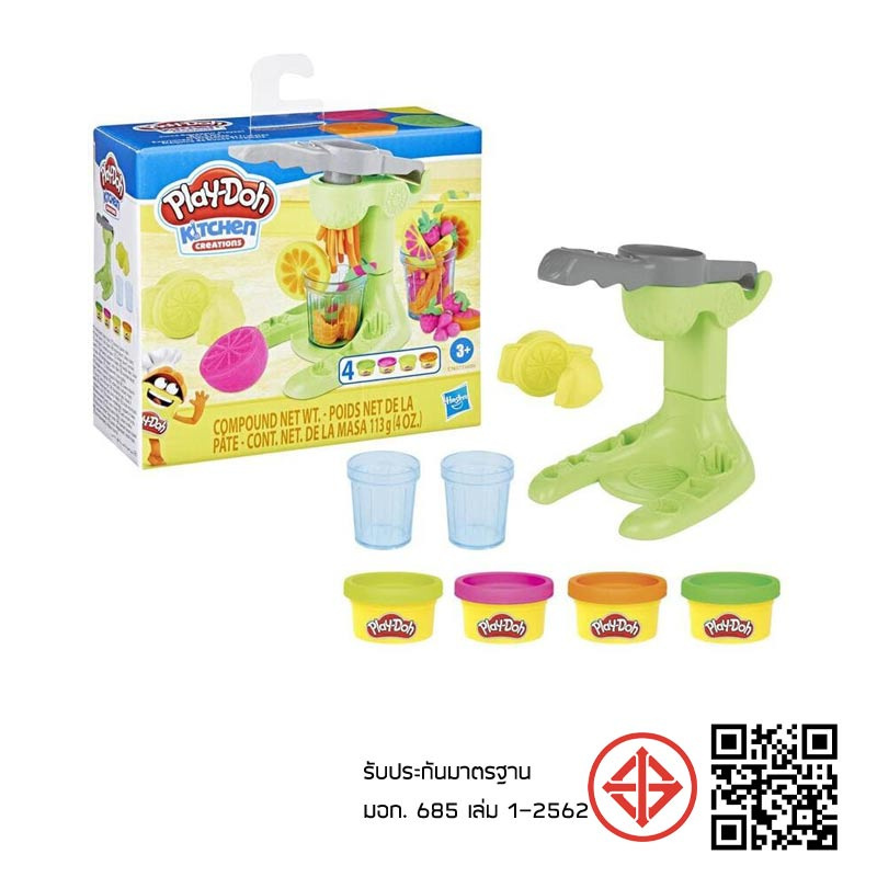 ของเล่นเครื่องคั้นน้ำส้ม PLAY-DOH มาพร้อมกับอุปกรณ์ทั้งหมดที่เด็ก ๆ ต้องการในการสร้างเครื่องดื่มผลไม้จำลองของตัวเอง
