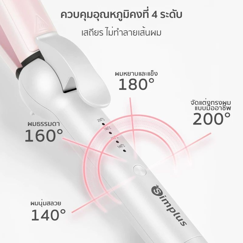 Simplus เครื่องม้วนผมลอนตรง 49 วัตต์ รุ่น JFBA004 ขาว-ชมพู
