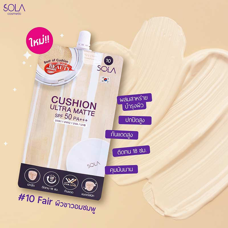 Sola คุชชั่น Cushion Ultra Matte SPF50 PA+++ 7มล. (แพ็ก 6 ชิ้น) - #20 สำหรับผิวขาวเหลือง