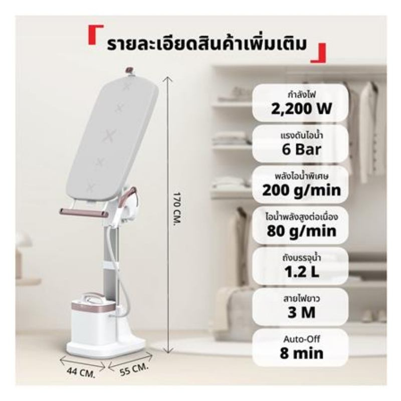 ราวแขวนเสื้อในตัว สามารถแขวนเสื้อผ้าได้ทันทีเมื่อรีดเสร็จ