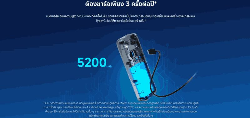 แบตเตอรี่ี่ขนาด 5200 mAh สแตนบายได้ 4.8 เดือน