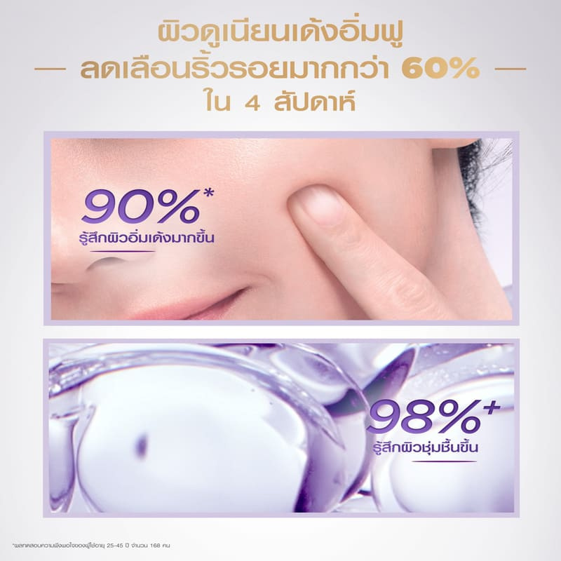 - ช่วยให้ผิวดูอิ่มเด้ง อ่อนเยาว์ สว่างใสทันที 42%