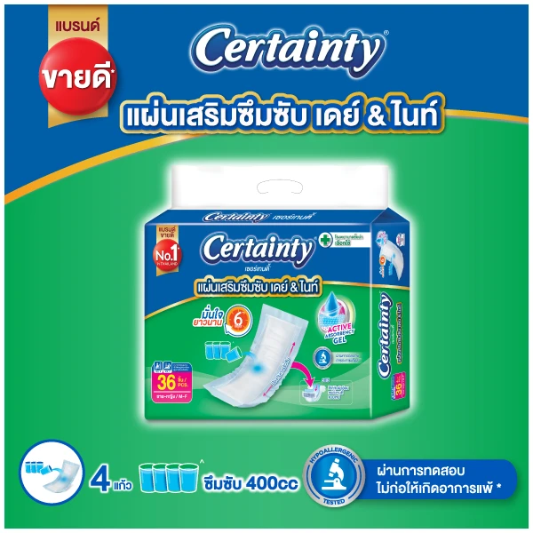 เซอร์เทนตี้ แผ่นเสริมซึมซับ เดย์ & ไนท์ (มีแบบ 12-36 ชิ้น)
