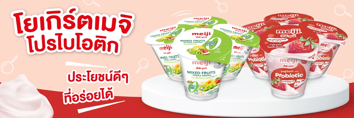 โยเกิร์ตไม่มีไขมัน รสผลไม้รวมผสมธัญพืช (ตราเมจิ) 135 กรัม แพ็ก 4