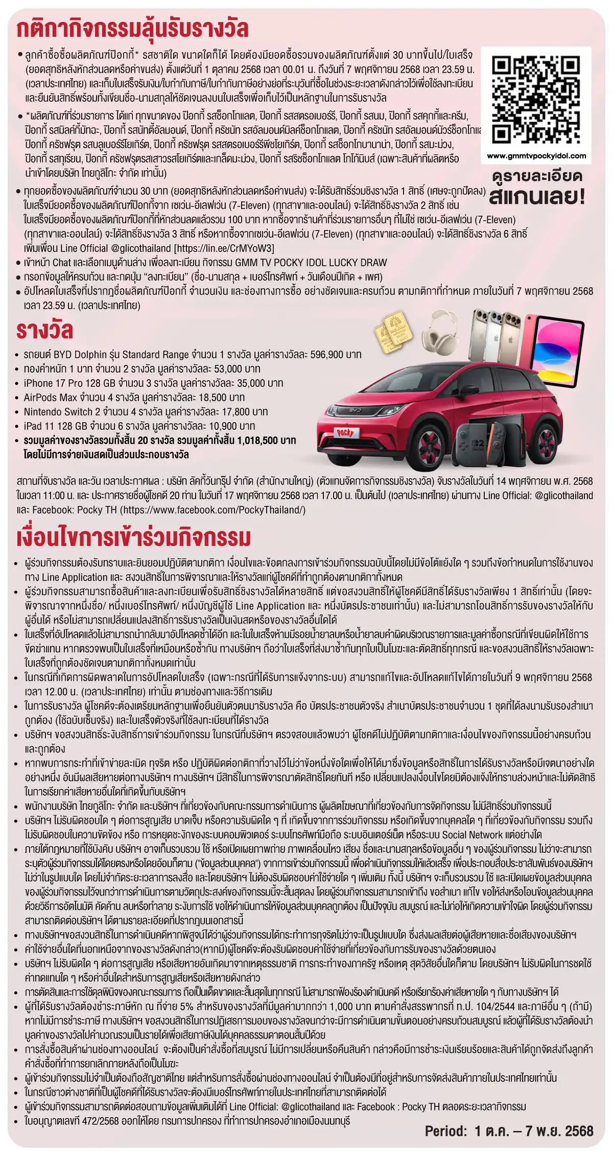 GMM TV Pocky Idol เมื่อซื้อสินค้าขนมภายใต้แบรนด์กูลิโกะ ที่ร่วมรายการ ครบ 30 บาท รับสิทธิ์ลุ้นรางวัล/ใบเสร็จ โปรดีต่อใจ (8 สินค้า)