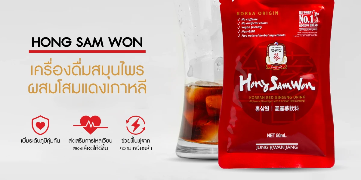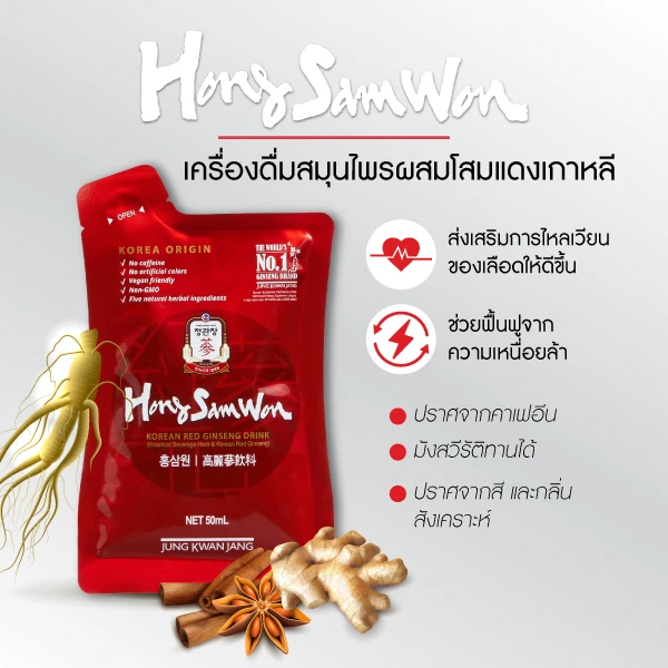 JUNG KWAN JANG ฮง ซัม วอน (เครื่องดื่มผสมข้าวบาร์เลย์, พุทราจีน, ขิง และโสม) บรรจุ 15 ซอง