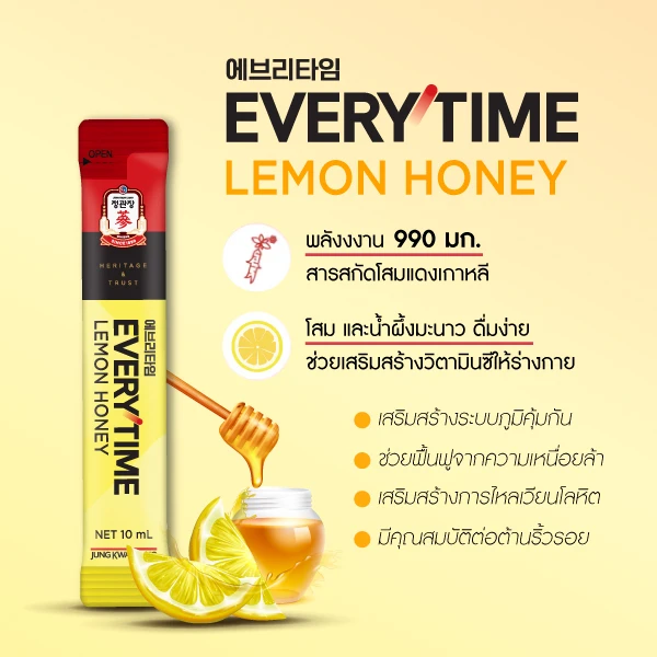 JUNG KWAN JANG เอเวรี่ไทม์ เลม่อน ฮันนี่ (เครื่องดื่มผสมโสม) บรรจุ 30 ซอง