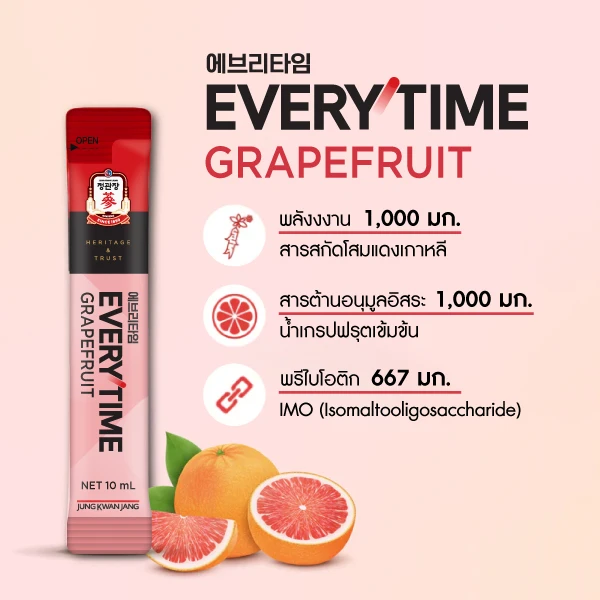 JUNG KWAN JANG เอเวรี่ไทม์ เกรฟฟรุต (เครื่องดื่มผสมโสม เกรฟฟรุต และกล้วย) บรรจุ 30 ซอง