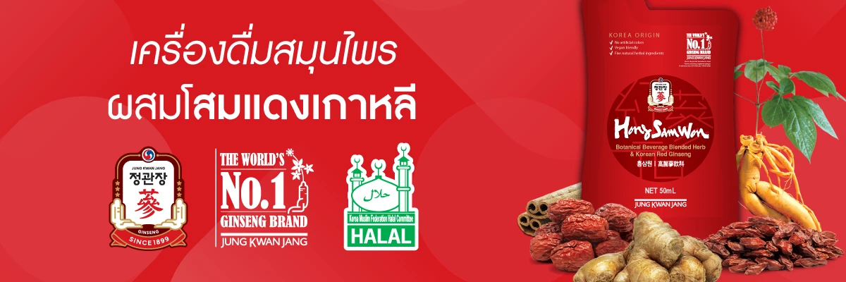 JUNG KWAN JANG ฮง ซัม วอน (เครื่องดื่มผสมข้าวบาร์เลย์, พุทราจีน, ขิง และโสม) บรรจุ 30 ซอง