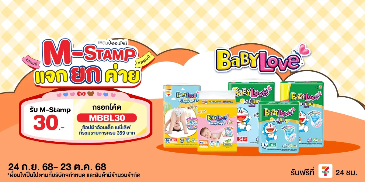 เบบี้เลิฟ ผ้าอ้อมเด็ก อีซี่ เทป ขนาดเมก้า (มีไซส์ NB-M)