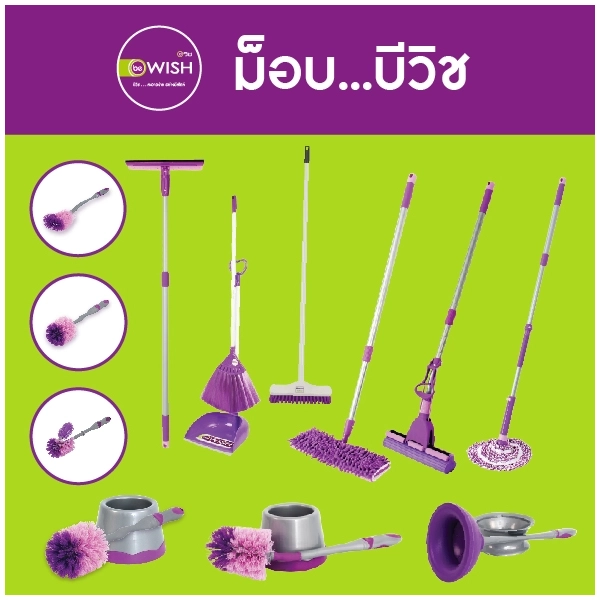 Be Wish แปรงขัดพื้นด้ามจับ เคลิฟ สีม่วง