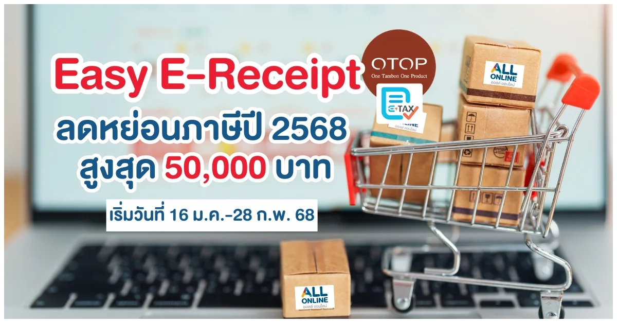 ตามจำนวนจ่ายจริง แต่ไม่เกิน 50,000 บาท เฉพาะที่ได้รับ e-Tax Invoice หรือ e-Receipt เท่านั้น โครงการนี้เรียกว่า "อี-เท็กซ์ 2568" (Easy E-Receipt)