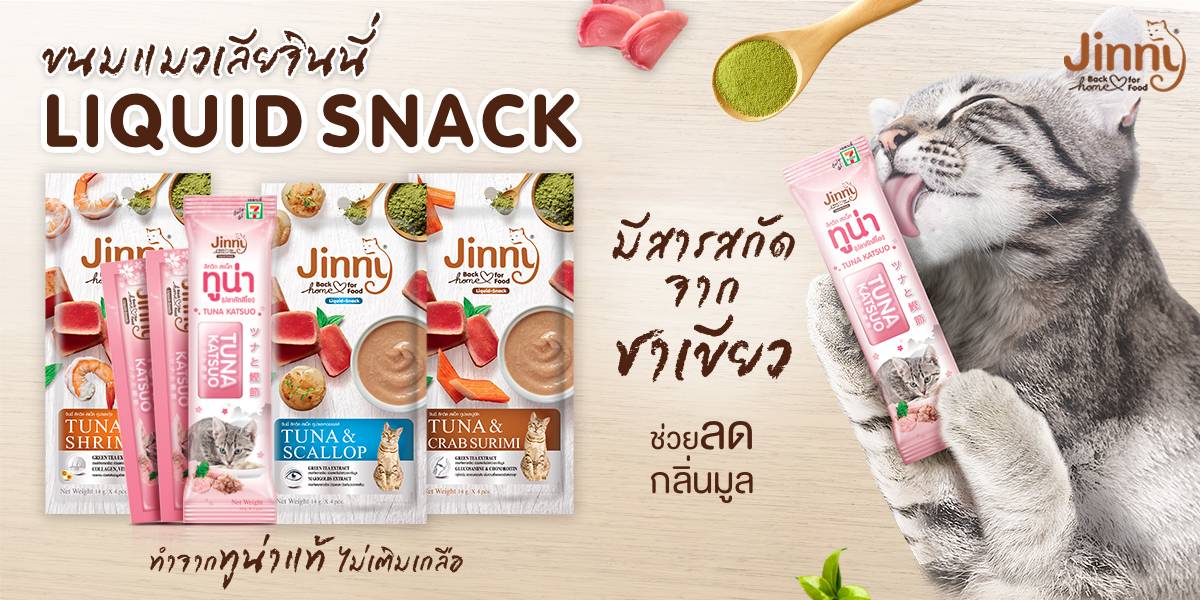 Jinny ขนมแมวเลีย รสทูน่าและปลาโอ (1 แพ็ก 6 ชิ้น)