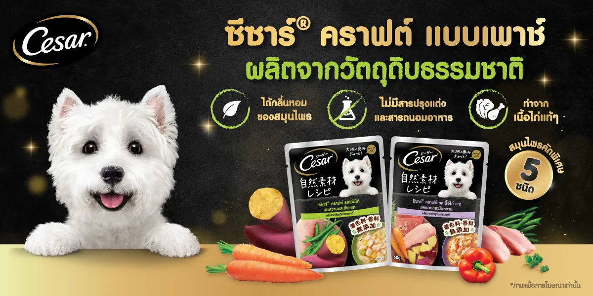 ซีซาร์ อาหารสุนัข ชนิดเปียก สูตรสุนัขโต รสไก่, แกะ ,แครอท และมันหวาน 60 ก.