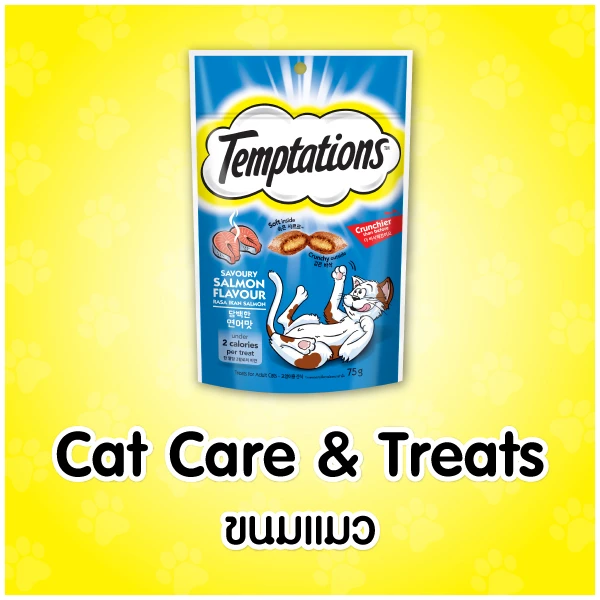 เทมเทชั่นส์ ขนมแมว กรอบนอกนุ่มใน สูตรแมวโต รสเซเวอรรี่แซลมอน 75 ก.