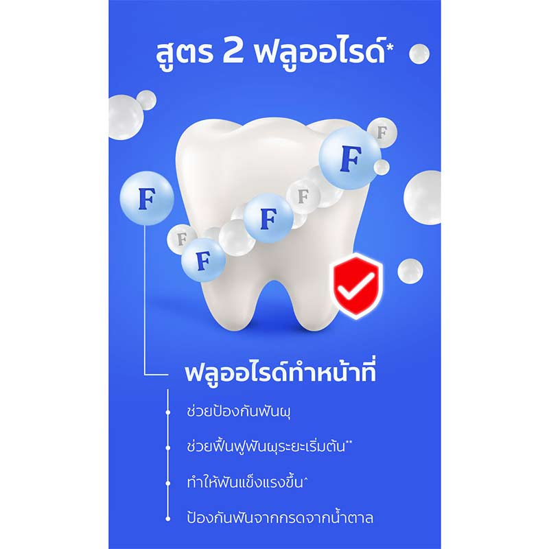 - ยาสีฟันมีส่วนผสมของลิควิด แคลเซี่ยมและฟลูออไรด์ช่วยให้ฟันแข็งแรงและป้องกันฟันผุ