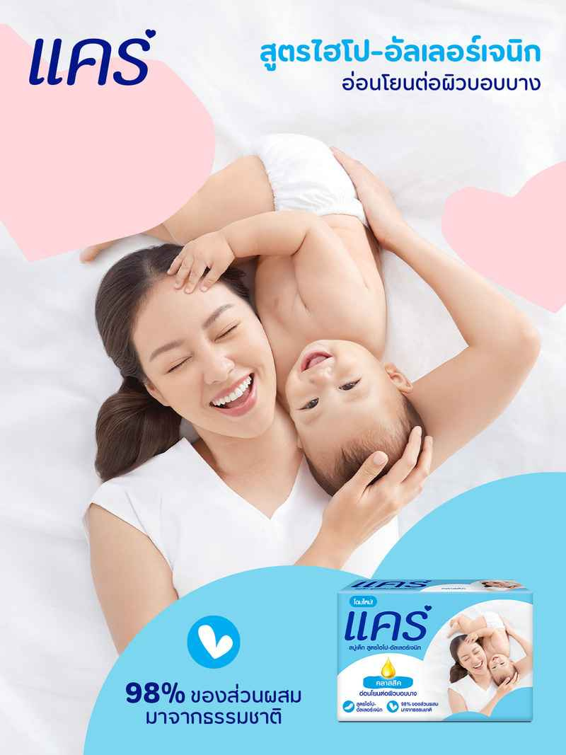 - สบู่แคร์สีฟ้า ขนาด 60 กรัม สูตรไฮโป-อัลเลอร์เจนิก ไม่ก่อให้เกิดการระคายเคืองหรือการแพ้ อ่อนโยนแม้ผิวที่บอบบาง ผ่านการทดสอบไฮโป-อัลเลอร์เจนิกทางการแพทย์ผิวหนังประเทศสหรัฐอเมริกา ไม่มีน้ำหอมฉุน