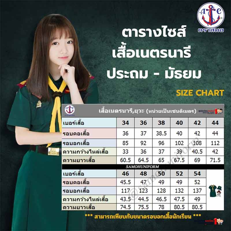 *** ขนาดไซส์เทียบเท่าเสื้อนักเรียนตราสมอ หรือ ยี่ห้อที่ได้รับมาตราฐาน สามารถอ้างอิงเพื่อใช้ในการเลือกไซส์ได้ ***