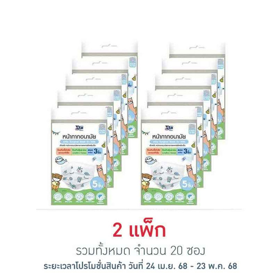 เอ็กซ์ต้า หน้ากากอนามัยเด็ก ลายแก๊งสบายใจ ซอง 5 ชิ้น แพ็ก 10 ซอง