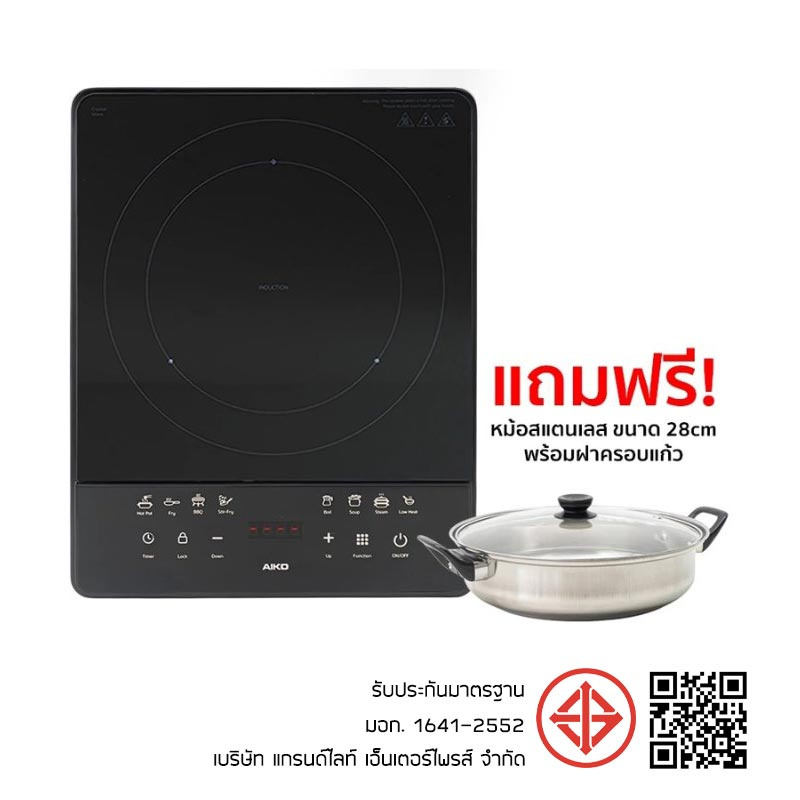 - เตาแม่เหล็กไฟฟ้า AIKO ขนาด 11 นิ้ว ระบบควบคุมแบบสัมผัส รองรับการใช้งานได้หลากหลายฟังก์ชัน