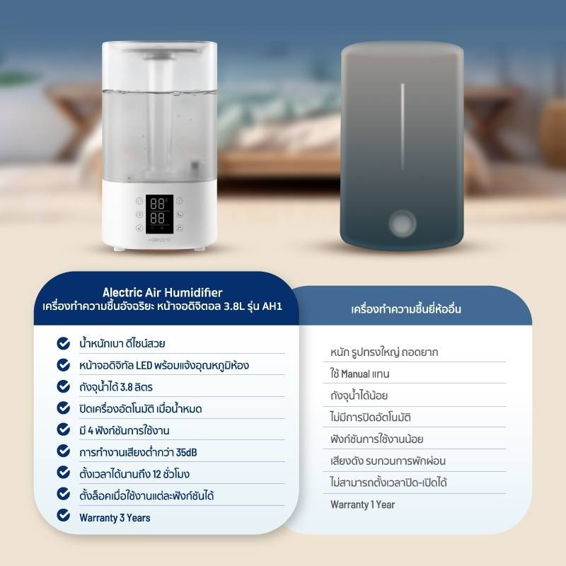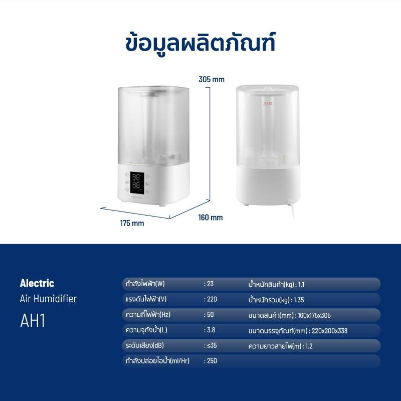 Alectric Air Humidifier เครื่องทำความชื้นอัจฉริยะ หน้าจอดิจิตอล 3.8L รุ่น AH1 - รับประกัน 3 ปี