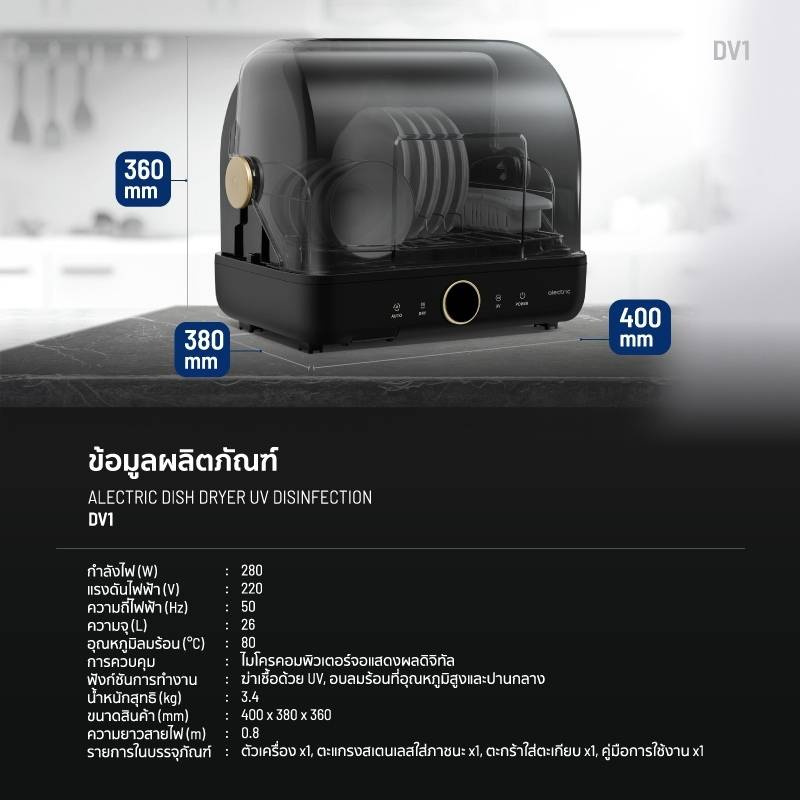 Alectric เครื่องอบจานไฟฟ้า รุ่น DV1 - รับประกัน 3 ปี