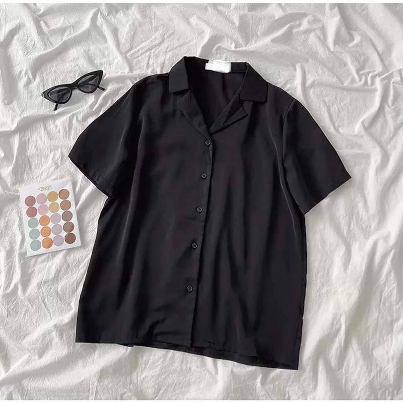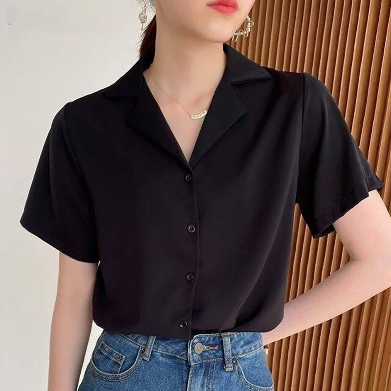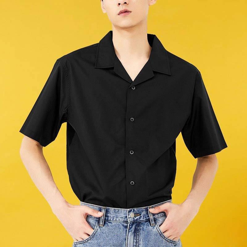 - เสื้อเชิ้ตแขนสั้นสไตล์เกาหลี สีดำ เรียบหรู ใส่ง่ายได้ทุกวัน
