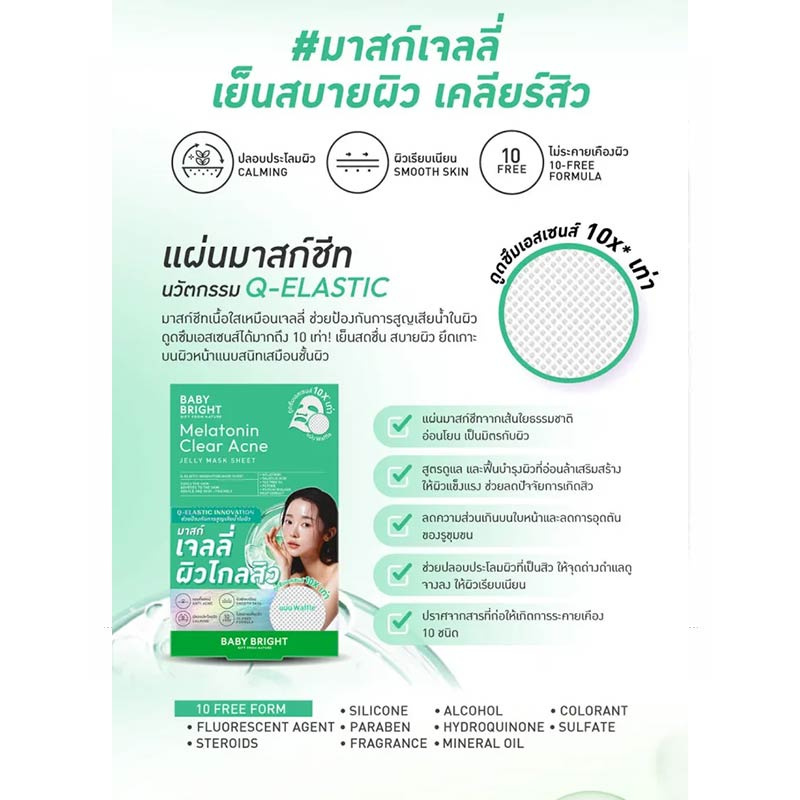 - เบบี้ไบร์ท เมลาโทนินเคลียร์แอคเน่เจลลี่มาสก์ชีท