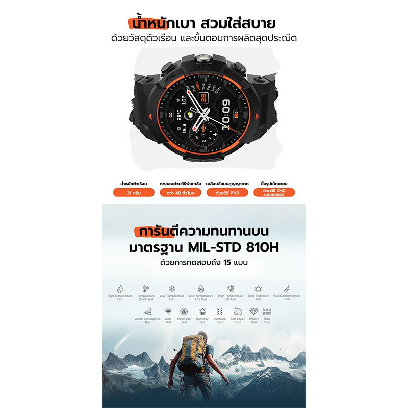 การันตีความทนทานบนมาตรฐาน MIL-STD 810H บนการทดสอบถึง 15 แบบ