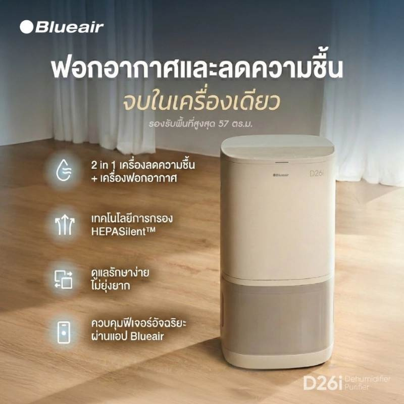Blueair เครื่องลดความชื้นและฟอกอากาศ รุ่น D26i (Dehumidifier+Purifier 2in1) (English version kindly see details below)