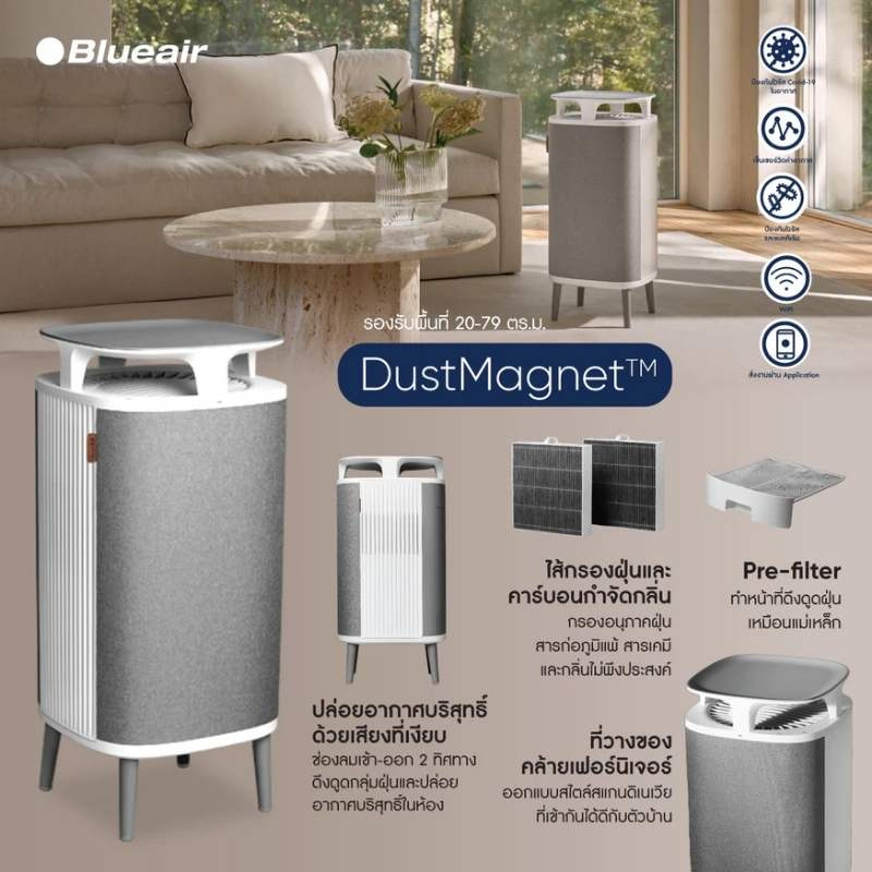 Blueair DustMagnet 5240i ครอบคลุมพื้น 20 ตร.ม. – 48 ตร.ม (English version kindly see details below)