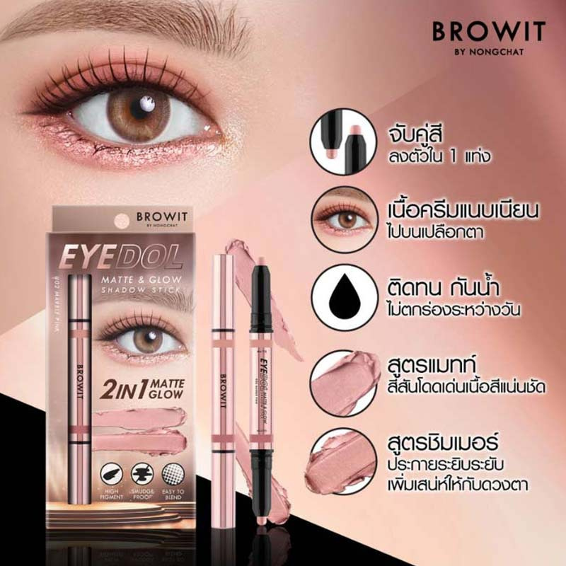 อายแชโดว์เนื้อครีม รูปแบบแท่ง 2 เฉดสีในแท่งเดียว ที่รวมทั้งสูตรแมทท์และสูตรชิมเมอร์ไว้ด้วยกัน ช่วยสร้างสีสันบนเปลือกตาได้ครบ จบแบบไม่ยุ่งยาก ด้วยคู่สีที่เลือกมาแล้วมิกซ์แอนด์แมตช์กันอย่างลงตัว สูตรแมทท์ ช่วยสร้างสีสันโดดเด่น เนื้อสีแน่นชัด และสูตรชิมเมอร์ สร้างประกายระยิบระยับ พร้อมเพิ่มเสน่ห์ให้กับเปลือกตาได้อย่างสมบูรณ์แบบ ด้วยเนื้อครีมที่แนบเนียนไปบนเปลือกตา มอบความเป็นธรรมชาติ ติดทนนาน กันน้ำ กันเหงื่อ และไม่ตกร่องระหว่างวัน