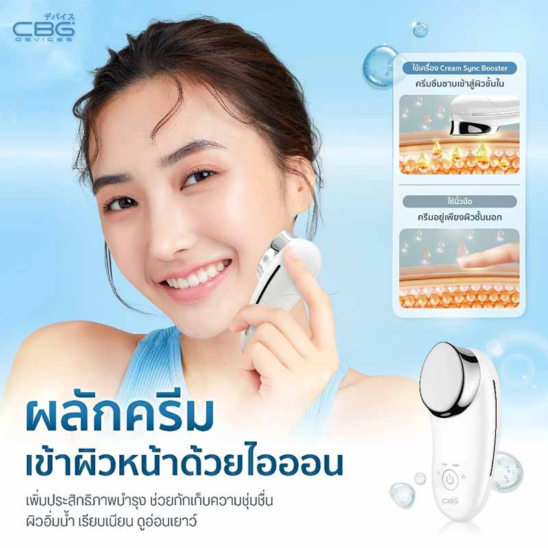 ปลดล็อกพลังแห่งการบำรุงผิวอย่างเต็มประสิทธิภาพด้วย CreamSync Booster เครื่องผลักครีมด้วยไอออน มาพร้อมฟังก์ชั่น 2 in 1 สุดล้ำ ช่วยให้ผิวของคุณดูดซับสารอาหารจากสกินแคร์ได้อย่างเต็มประสิทธิภาพ เพื่อผิวสวยเปล่งประกายไร้ที่ติ