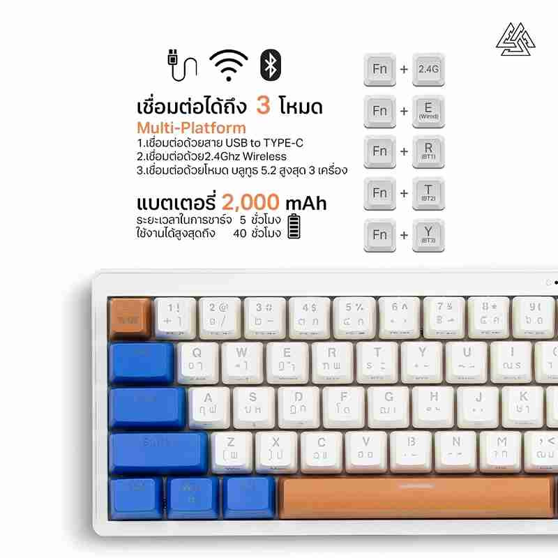ใช้งานได้ 3 แบบ บลูทูธ 5.2 / USB to type-c / Wireless2.4